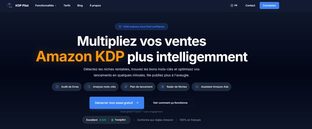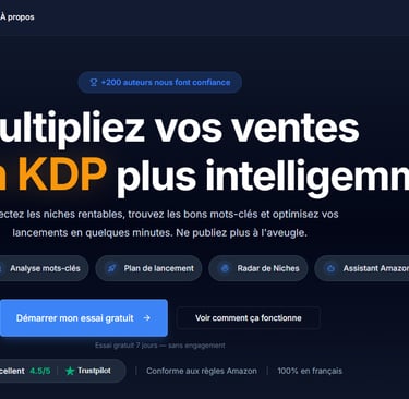 Vous êtes auteur sur Amazon KDP et vous avez l'impression de publier dans le vide ? Vous passez des heures à chercher des mots-clés, à tester vos couvertures, à ajuster vos fiches… sans vraiment savoir si vous prenez les bonnes décisions ? Vous n'êtes pas seul. Et c'est exactement pour résoudre ce problème qu'est né KDP Pilot. Cet outil KDP tout-en-un est conçu pour transformer vos données en actions concrètes. Fini les tableaux Excel éparpillés, les captures d'écran accumulées et les heures perdues à analyser sans avancer. Avec KDP Pilot, vous avez enfin un cockpit clair pour piloter votre activité d'autoédition sur Amazon.